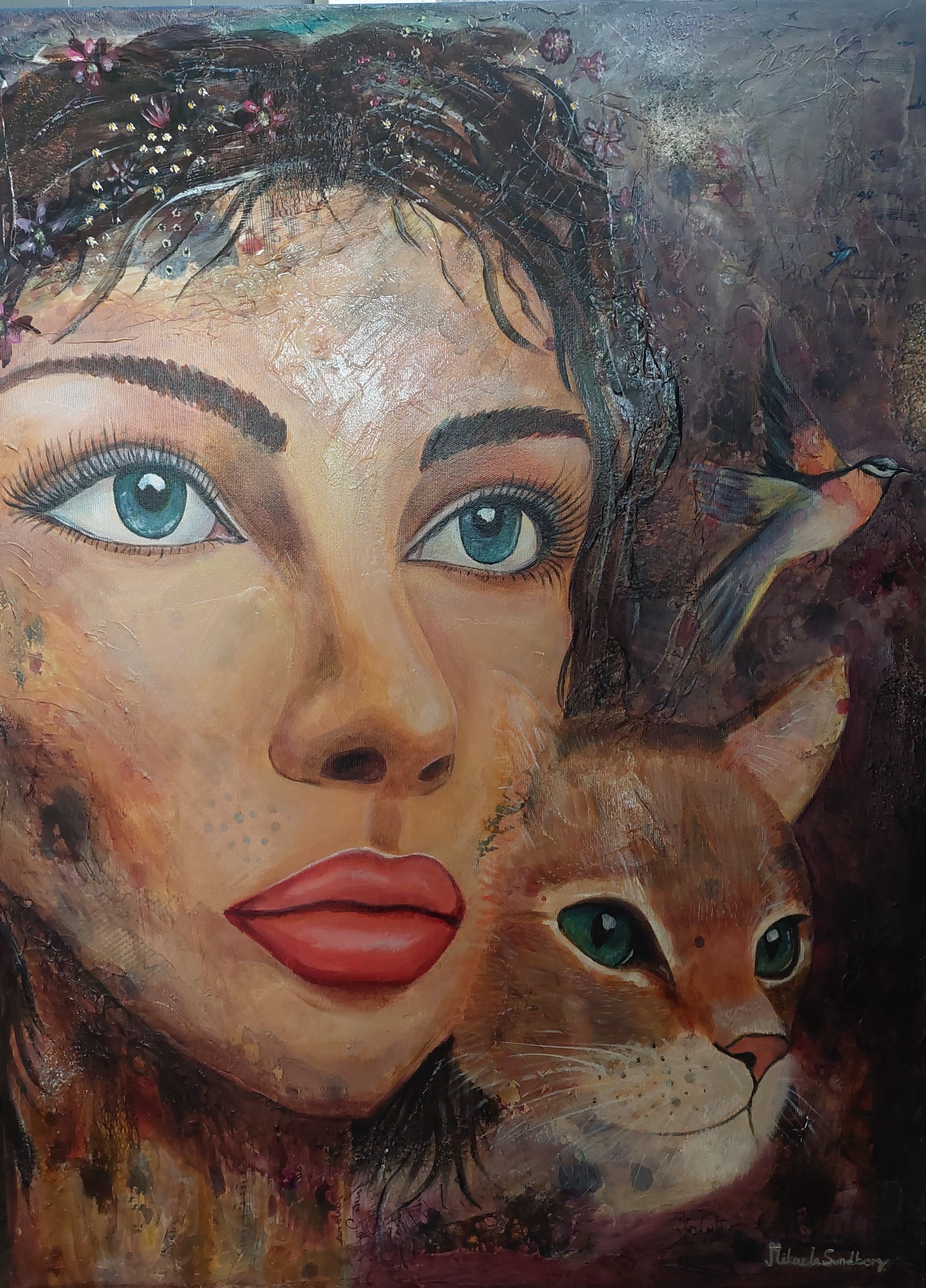 En mixmedia målning i olja. 60x80x2 cm canvas duk.