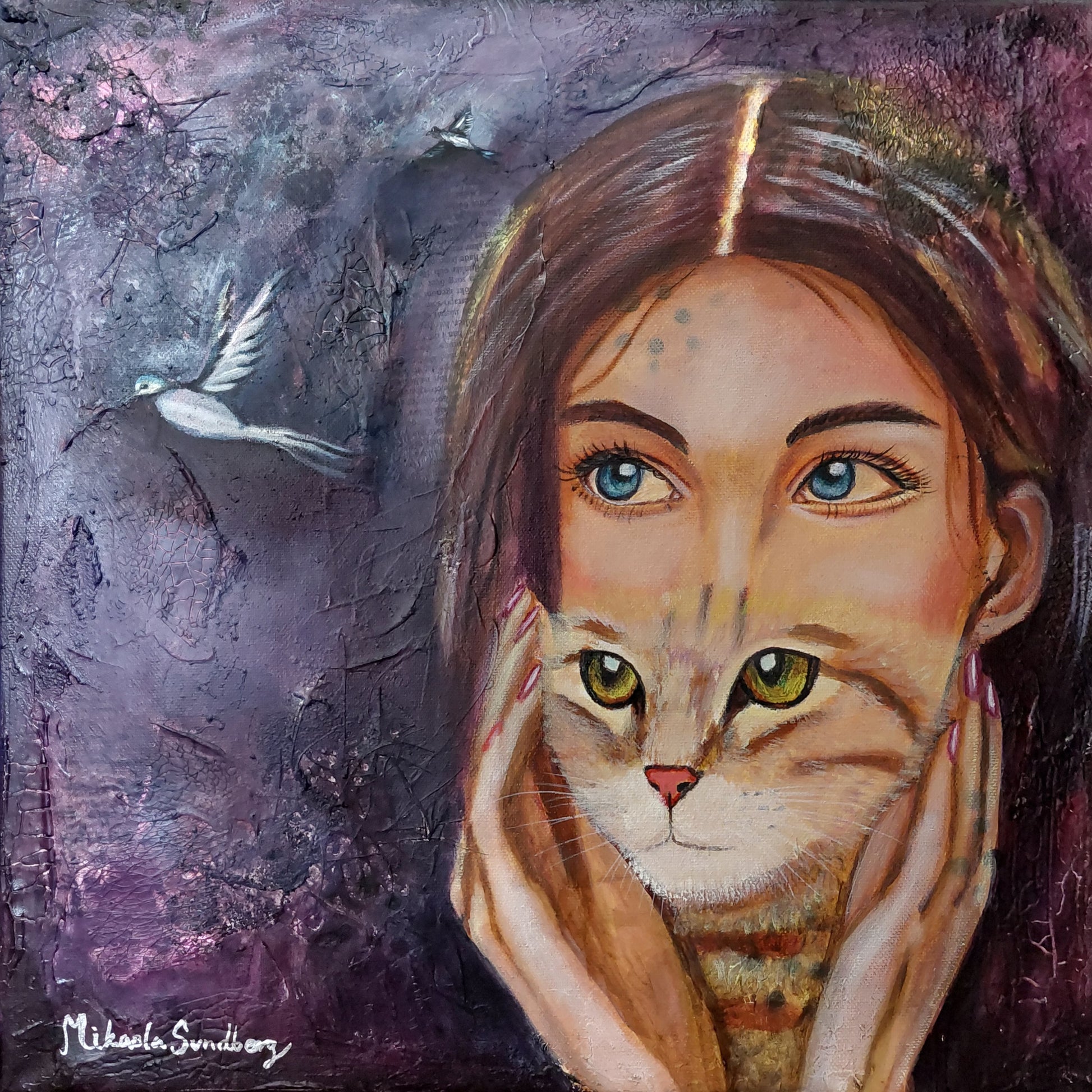 En mix media målning i olja 40x40x3 cm canvas duk.