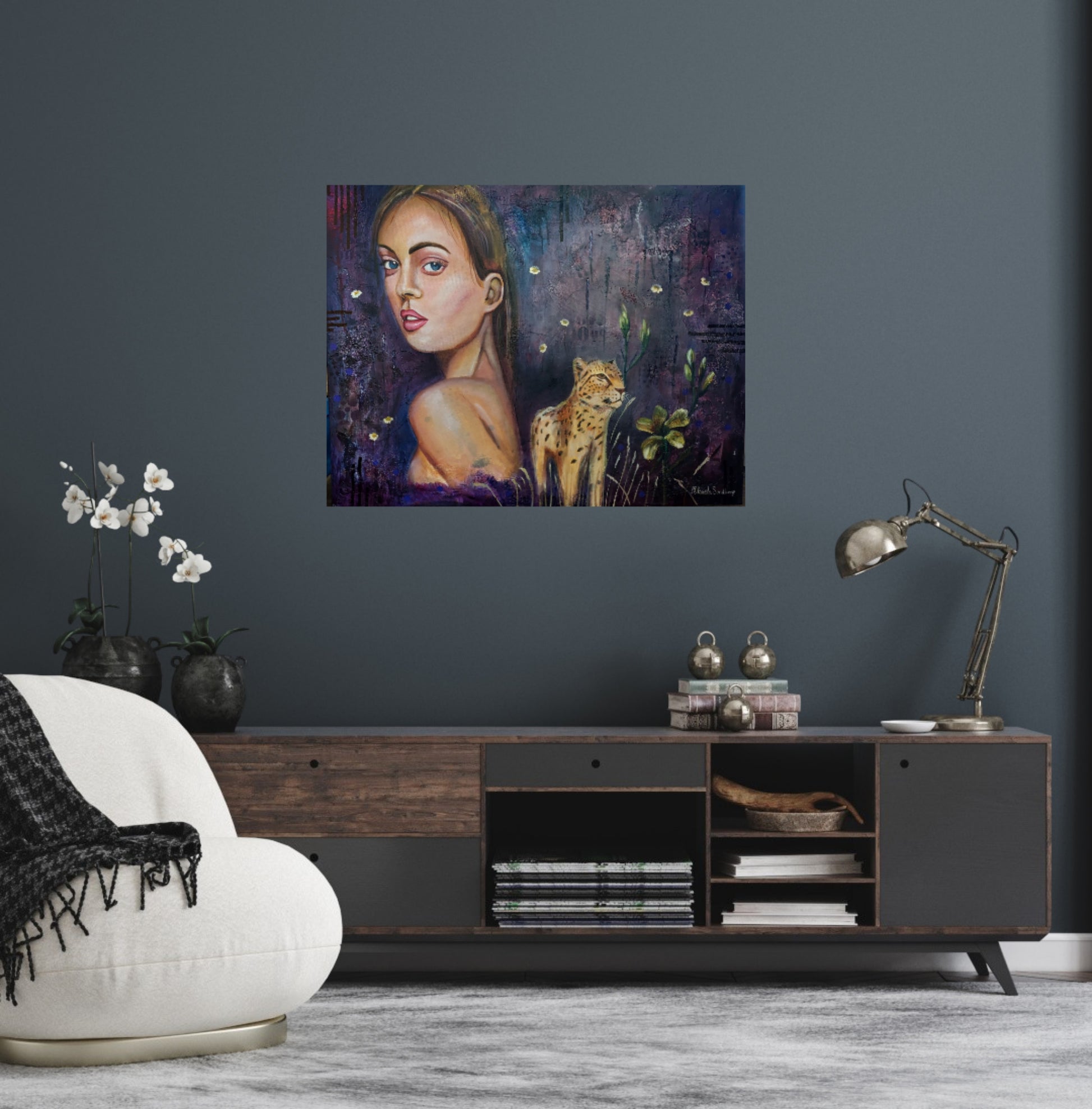 I stillheten bor styrkan. Där nattens energier möts i viskande färger där en vakande geopard ger kraft åt kvinnlig intuition.