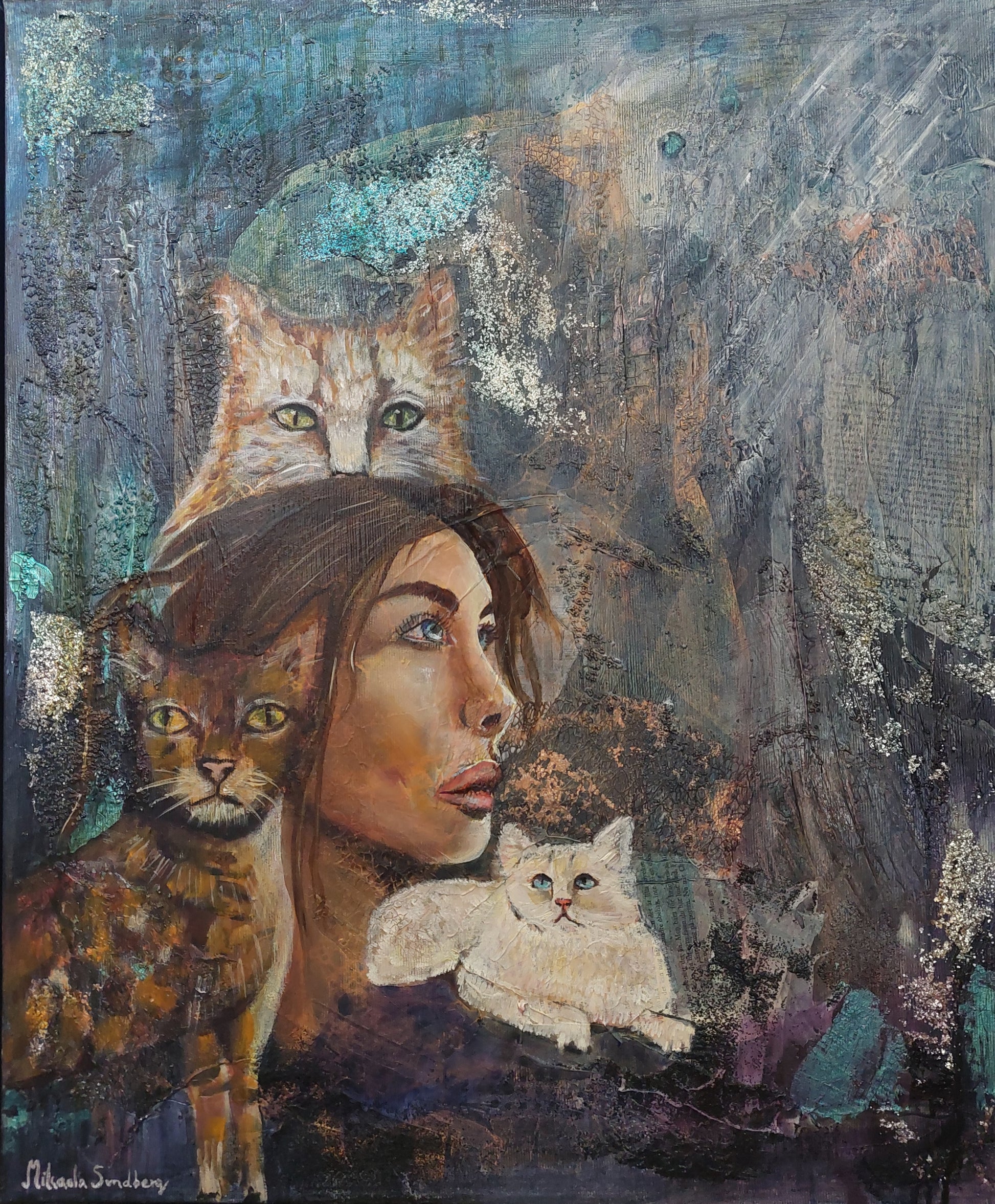 En målning om förtrogenhet ett drömskt landskap i mystisk stämning där de tillsammans mot ljuset strävar. En djup koppling om inre världar.